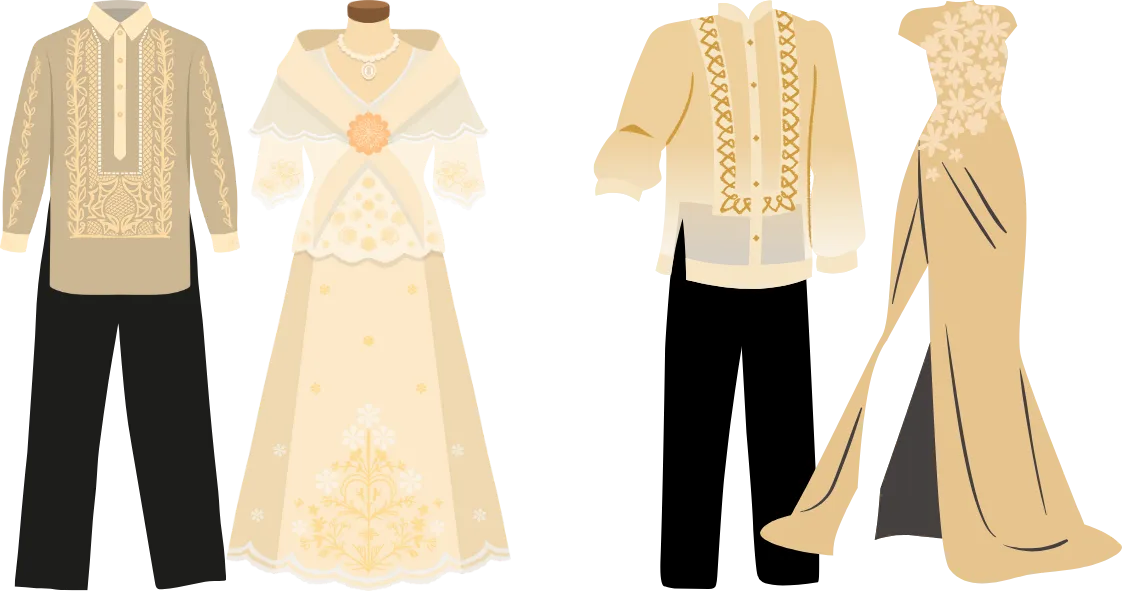 Ladies: Modern Filipiniana or Long Gown in the shade of Beige, Cream or Peach